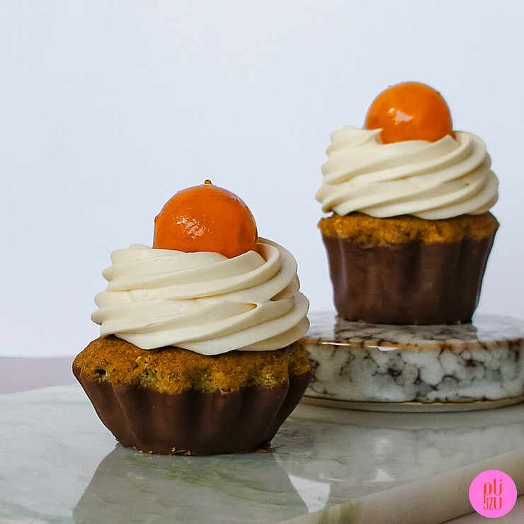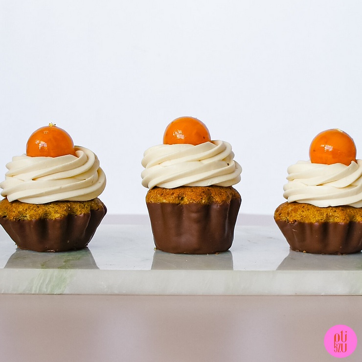 Foremki wypełnij masą do ¾ ich wysokości. Piecz w 170°C przez około 25 minut. Po upieczeniu pozwól babeczkom wystygnąć w foremkach.