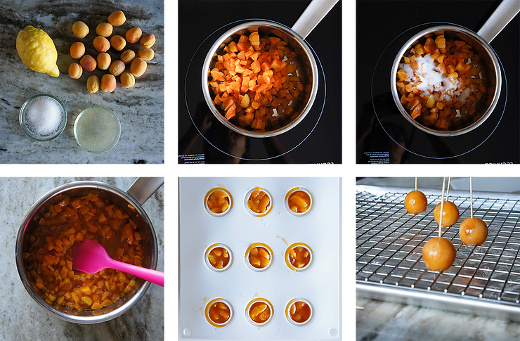 Morele pokrój w drobną kostkę i wymieszaj z cukrem. Umieść w rondelku i podgrzewaj na małej mocy. Z czasem owoce puszczą soki, a całość będzie przypominać konfiturę z kawałkami owoców. Zagotuj ją i zdejmij z płyty grzewczej. Dodaj napęczniałą żelatynę i mieszaj do jej rozpuszczenia.
