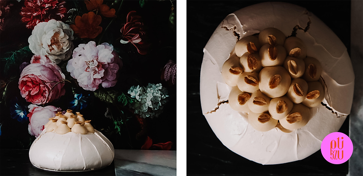 Natomiast połączenie octu/soku z cytryny ze skrobią jest odpowiedzialne za konsystencję bezy. Dzięki niemu beza jest mięciutka w środku jak pianka marshmallow.