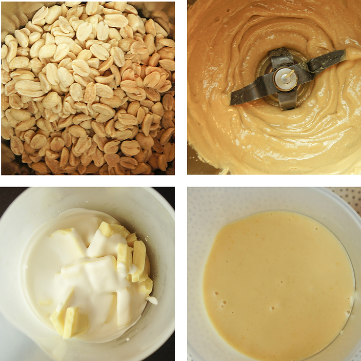 Pastę z orzechów arachidowych możesz kupić w sklepie. Natomiast ja swoją przyrządzam w domu. Mielę orzeszki ziemne w Thermomixie, do momentu aż uzyskam płynną pastę. Zazwyczaj trwa to około 5 minut. Możesz spróbować zrobić pastę w blenderze, w przystawce z ostrzami (oddzielny zamykany pojemnik).