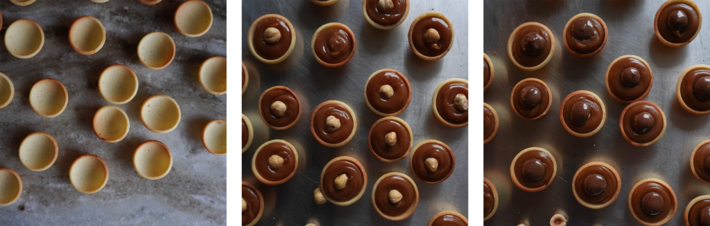 Kruche minikorpusy możesz wypiec w formie na orzeszki, w małych foremkach na babeczki lub na foremce silikonowej (tak, jak ja). Do tego karmel, prażone orzechy laskowe i krem czekoladowo-orzechowy. I możesz je wypiec spokojnie dwa tygodnie przed świętami. Czy to nie brzmi jak ciasteczkowe spełnienie marzeń?