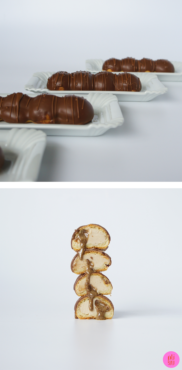 Następnie napełnij eklera kremem Kinder à la Bueno.