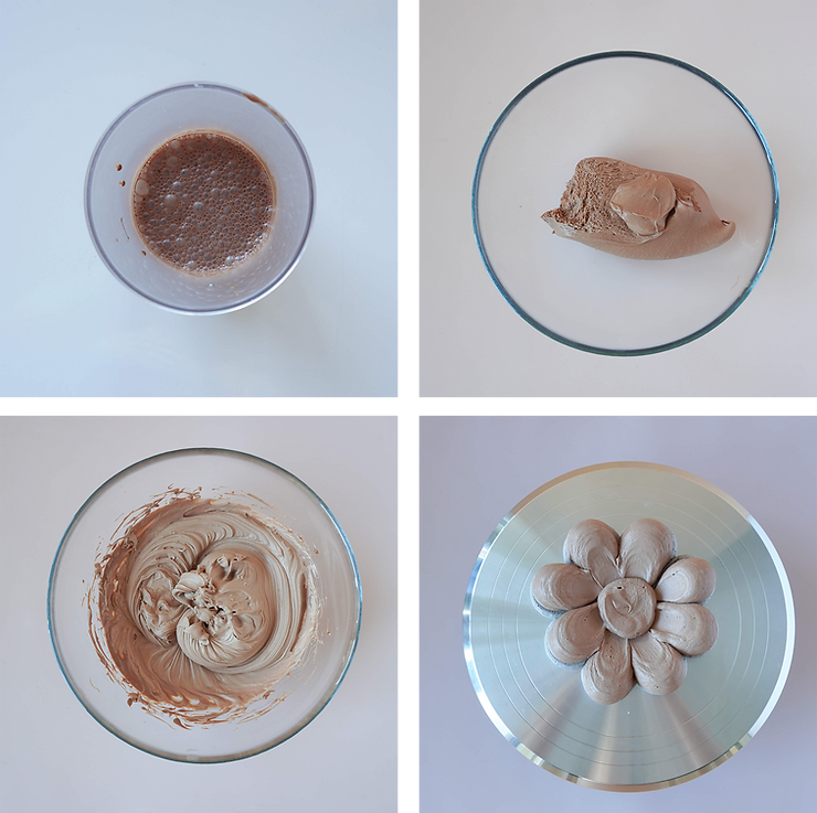 Wylej gorącą mieszankę na czekoladę. Blenduj, aż uzyskasz jednorodną emulsję. Dolej drugą część zimnej śmietanki i zblenduj. Zabezpiecz folią w kontakcie i odstaw do lodówki na 6 godzin.