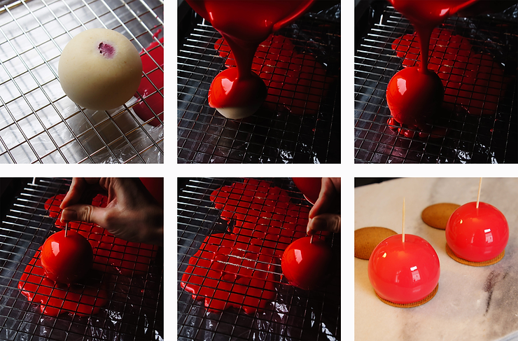 Odstaw do lodówki na kilka godzin. W tym czasie desery rozmarzną. Przechowuj w lodówce do dwóch dni. Polewa lustrzana z czasem matowieje, dlatego deser wygląda najlepiej pierwszego dnia.