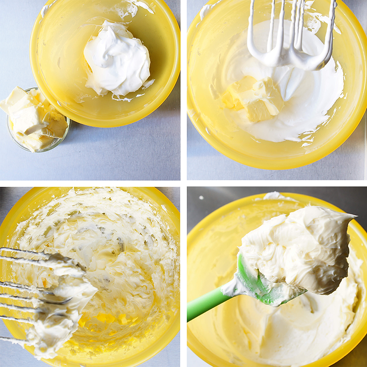 Do zimnej bezy włoskiej, stopniowo dodaj masło, pokrojone na kostki. Zanim dodasz kolejną partię masła, sprawdź czy poprzednia połączyła się z bezą. Ubijaj całość do uzyskania kremowej masy. U mnie trwa to zazwyczaj około 7 minut (od momentu dodania całej ilości masła do bezy). Wskazówka Ady: masło wyjmij z lodówki godzinę przed dodaniem go do bezy. Masło powinno być w temperaturze pokojowej, miękkie ale nadal trzymające formę.
