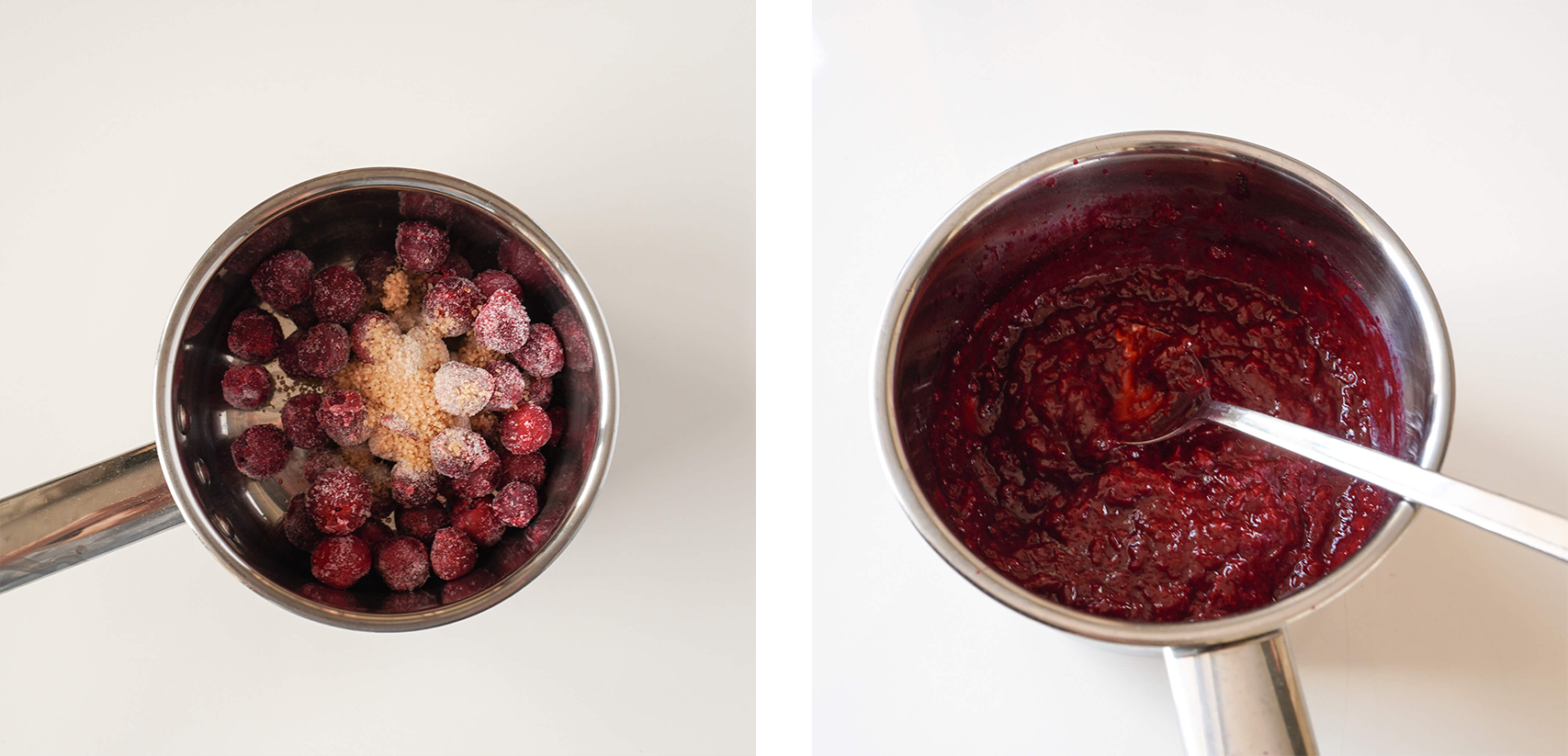 Wiśnie umieść w rondelku. Cukier wymieszaj z pektyną i dodaj do wiśni. Bardzo dokładnie wymieszaj i zagotuj. Zblenduj i odstaw do lekkiego stężenia w temperaturze pokojowej. Przed użyciem zblenduj i przełóż do rękawa cukierniczego.