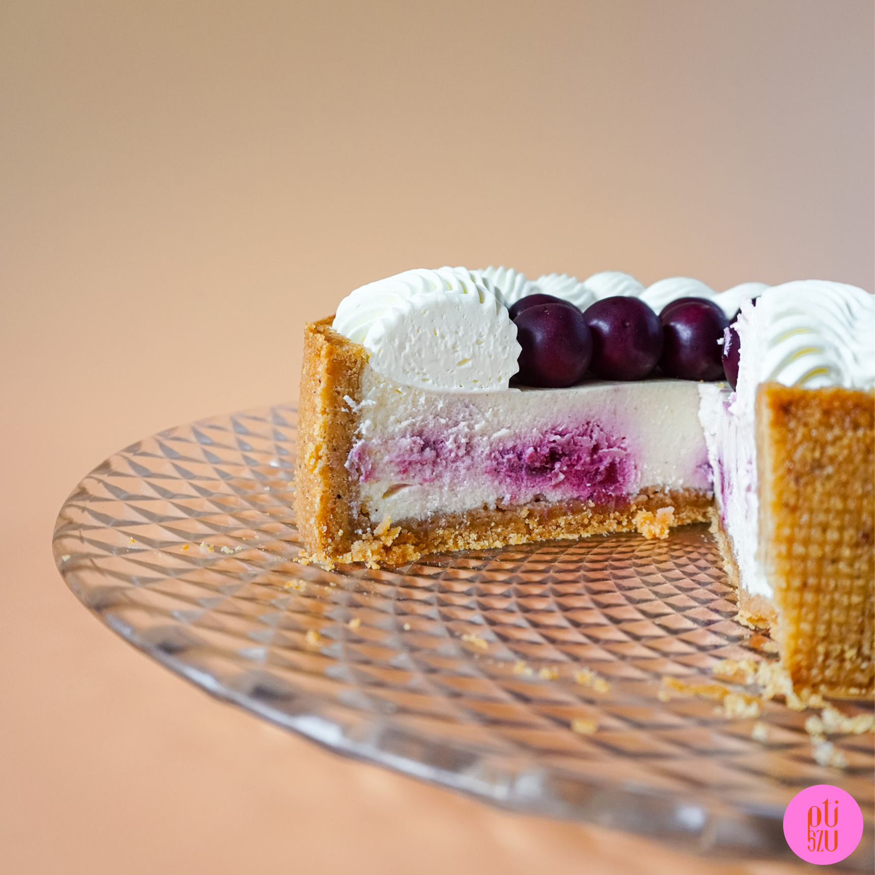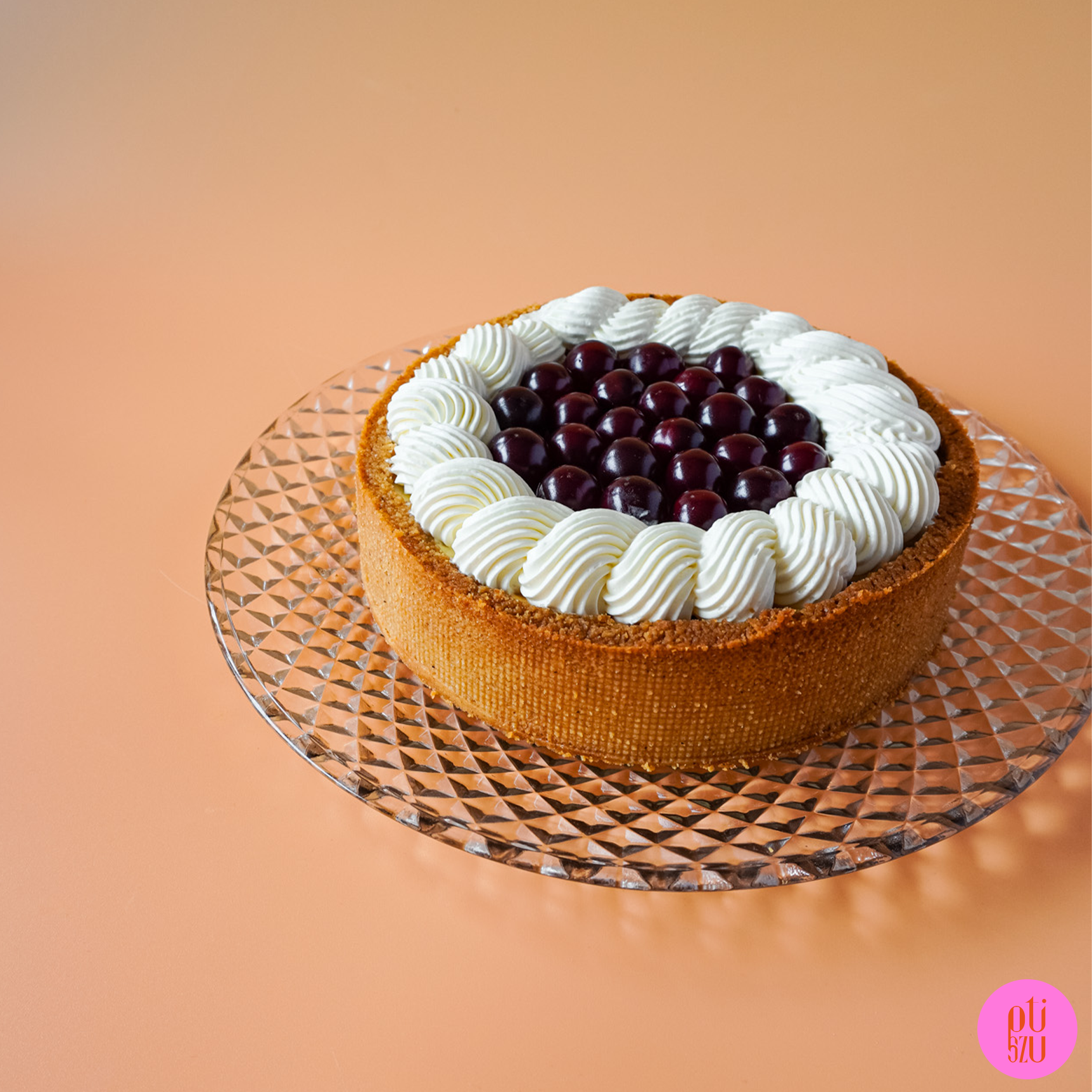 Na serniku wyszprycuj chantilly i ozdób wiśniami.