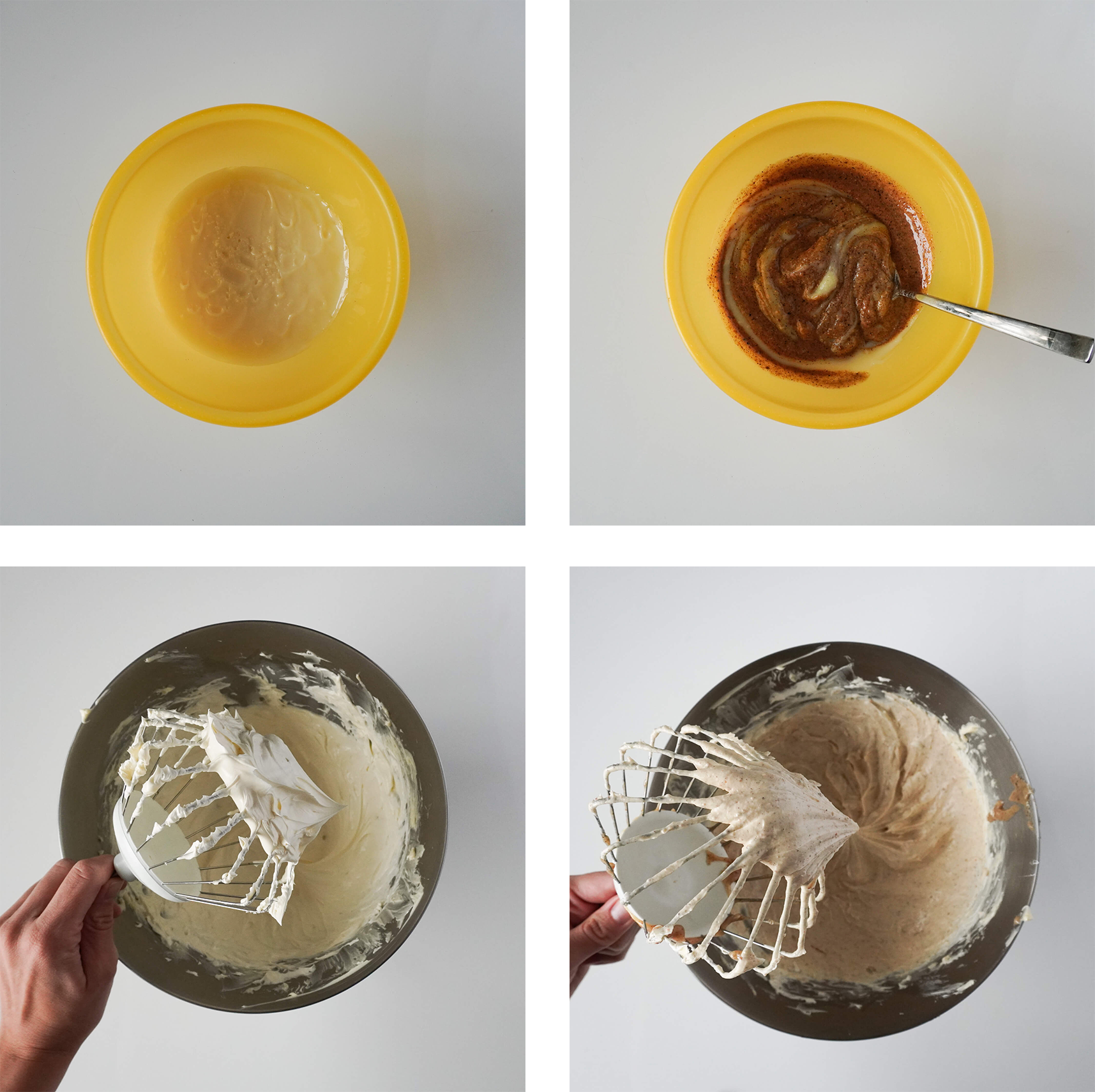 Masło umieść w czaszy miksera. Ubij je końcówką do ubijania (rózgą). U mnie proces trwa ok. 20–25 minut. Gotowe masło ma jaśniejszą barwę, jest puszyste i lekkie.