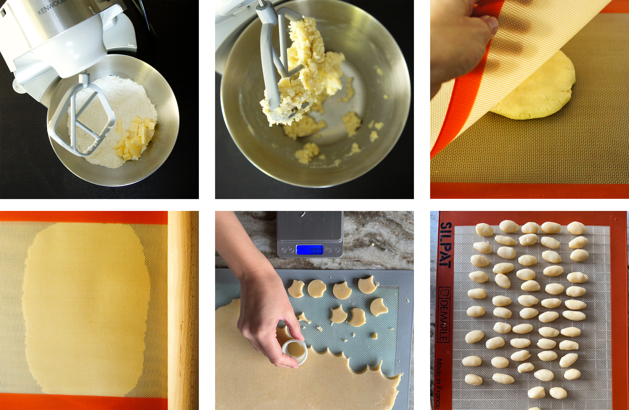 Wyjmij ciasto z zamrażarki i odklej je od obu mat. Dobierz okrągłą foremkę w taki sposób, aby wykrawany okrąg ważył ok. 4 gramy. Następnie z okręgów uformuj wałeczki.