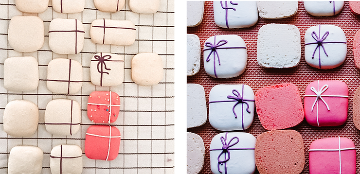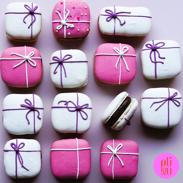 Święta tuż, tuż. W związku z tym przygotowałam dla Was makaroniki w specjalnym, świątecznym wydaniu. Mogę śmiało napisać, że nie widziałam jeszcze kwadratowych makaroników, stylizowanych na pudełko z prezentem. Mam nadzieję, że Was urzekną i zechcecie wykonać je w domu.