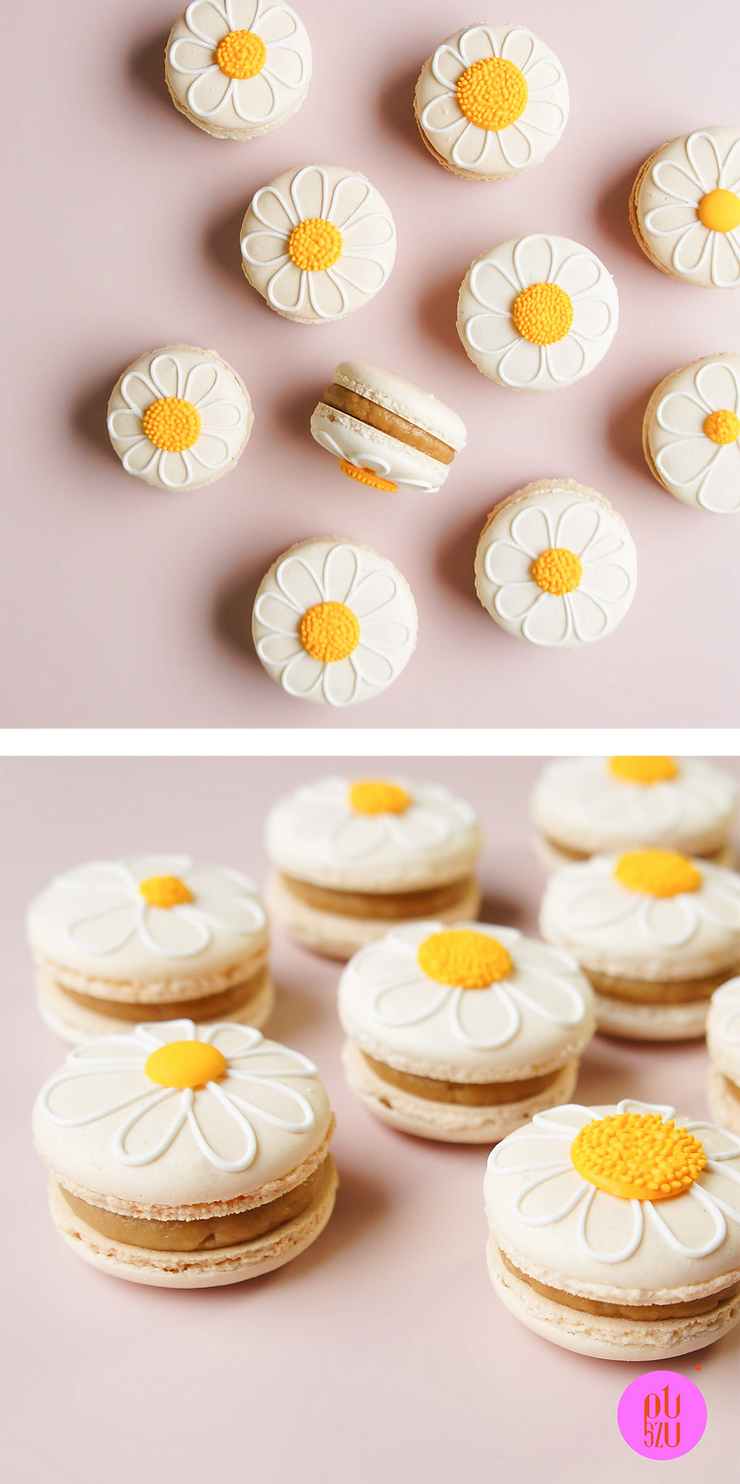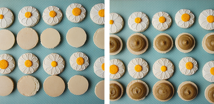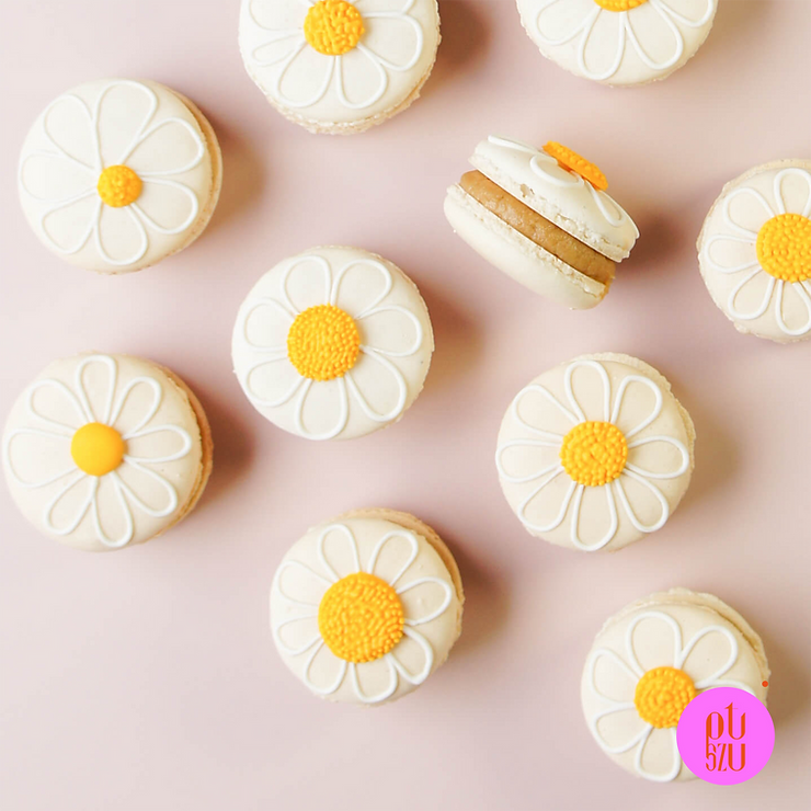 Dobierz makaroniki w pary. Na jednej połówce z każdej pary będziesz lukrować płatki stokrotki białym lukrem.