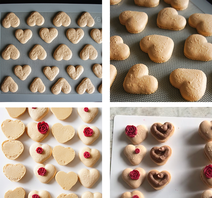 Jeśli chcesz upiec makaroniki, zachęcam Cię do przeczytania moich dwóch bardzo szczegółowych artykułów na ich temat: Makaroniki na bezie francuskiej i makaroniki na bezie włoskiej. Zobacz jak szprycować makaroniki serca tutaj lub na moim koncie na Instagramie lub TikToku.