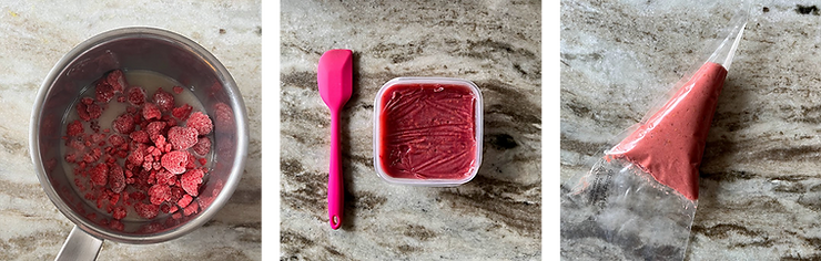 Przed użyciem blenduj żelkę do momentu, aż będzie miała gładką konsystencję. Przełóż masę do rękawa cukierniczego.