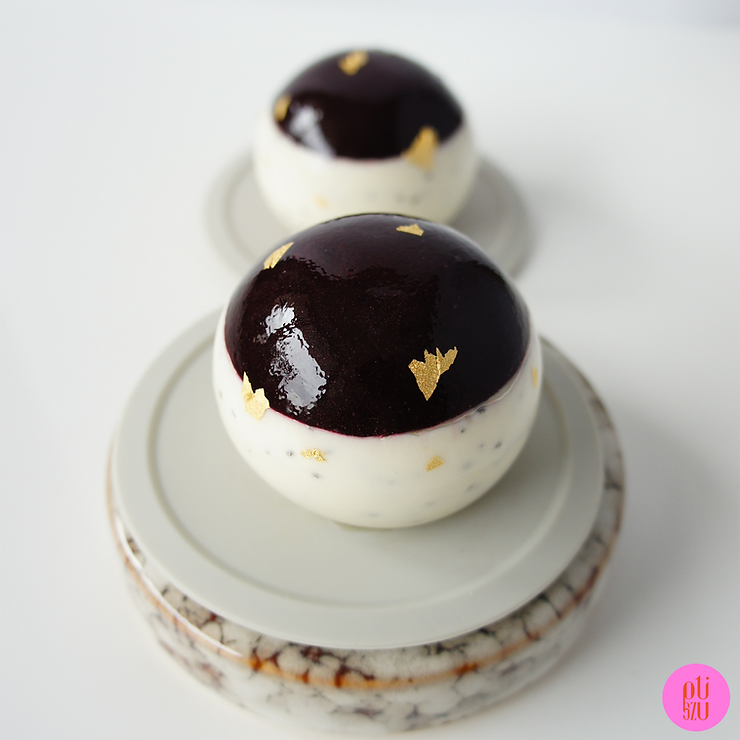 Monoporcje zostały przygotowane w formie silikonowej Silikomart SF192 TRUFFLES śr.62 mm H 52 mm.