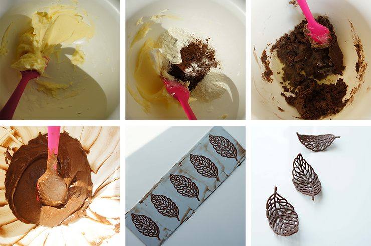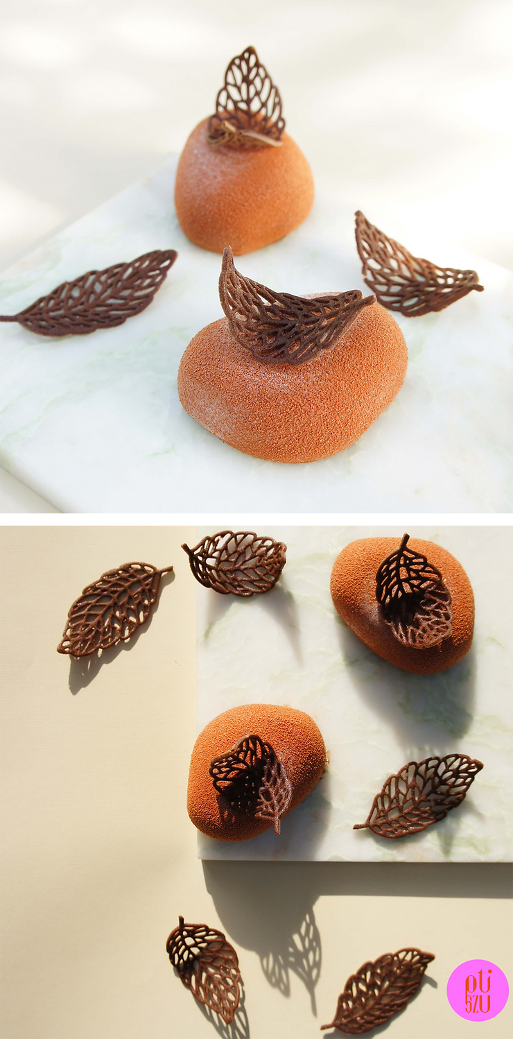 - ozdoby w formie listka z ciasta cygaretkowego.
