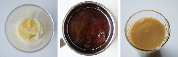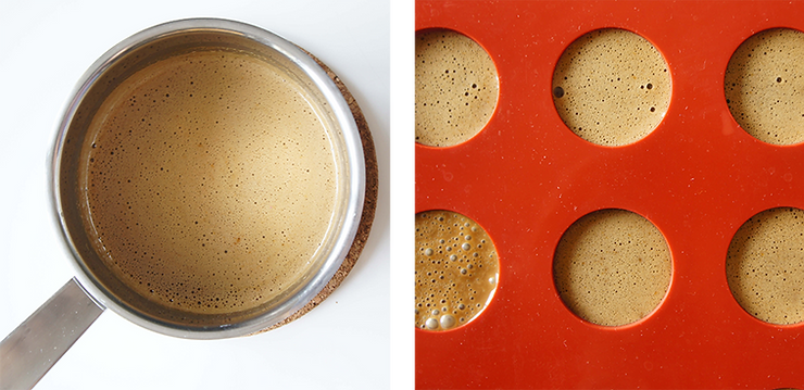 W rondelku podgrzej do 90°C wodę, espresso, cukier i syrop glukozowy. Zdejmij garnek z kuchenki.
