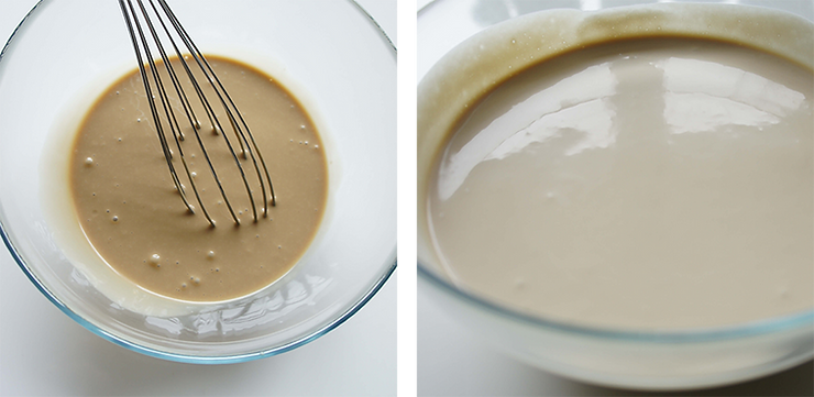 Zabezpiecz glazurę folią spożywczą w kontakcie. Odstaw do lodówki na 12 godzin. Przed użyciem podgrzej do 30°C i odpowietrz blenderem.