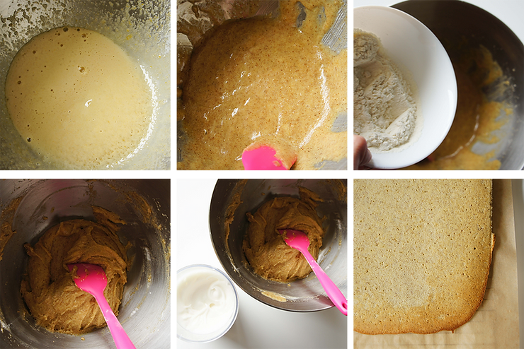 Ciasto przełóż na blachę wyłożoną papierem do pieczenia bądź matą silikonową. Rozsmaruj na grubość 5 mm. Piecz w 170°C (góra-dół) przez 8–10 minut.