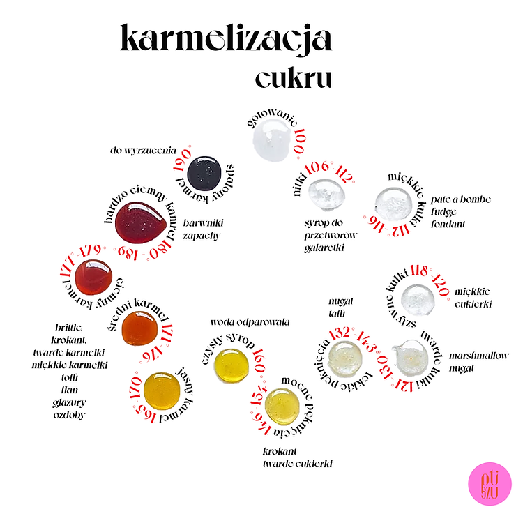 Syrop cukrowy (sam cukier bądź cukier z wodą) wykorzystywany jest nie tylko do robienia karmelu. W zależności od temperatury ma bardzo szerokie zastosowania. Zanim cukier osiągnie 165°C i zacznie się karmelizacja, przechodzi przez kilka etapów. Zobacz jak możesz użyć syropu cukrowego, w zależności od jego temperatury.