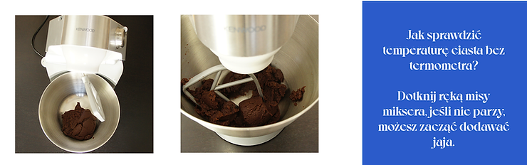 Przełóż gorące ciasto do czaszy miksera. Użyj końcówki „mieszadło” i włącz robot na średnie obroty. W ten sposób schładzasz ciasto. Jego temperatura powinna spaść do około 60°C. Dotknij misy, jeśli nie parzy, oznacza to, że przechodzisz śmiało do kolejnego etapu przygotowań.