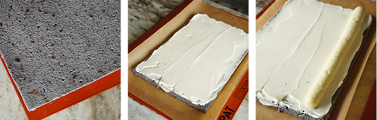 Delikatnie przyciskaj roladę do środka i zwijaj. Kiedy zwiniesz całość, przełóż delikatnie na deskę i odłóż do lodówki na noc.