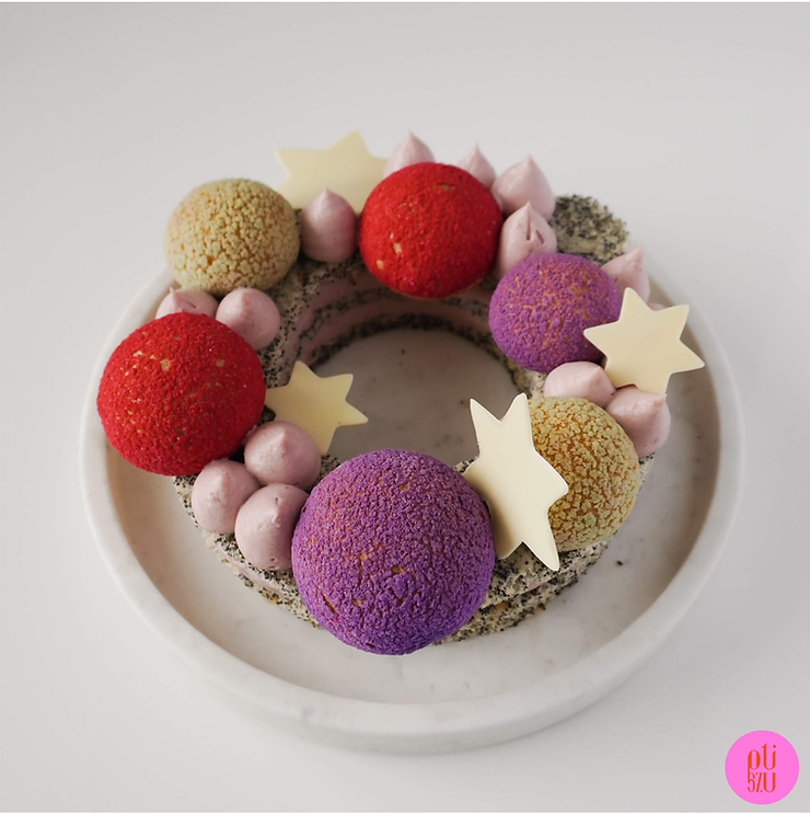 Delikatny biszkopt makowy w kształcie wianuszka przełożony wiśniowym kremem, a na nim ptysie wypełnione kremem makowym. Przepis na ten deser powstał przypadkiem. Pierwotny plan zakładał przepis na makowiec pieczony w keksówce. Jednak ten pomysł został wyparty przez świąteczny wianek. Jestem bardzo ciekawa jak Wam się podoba?