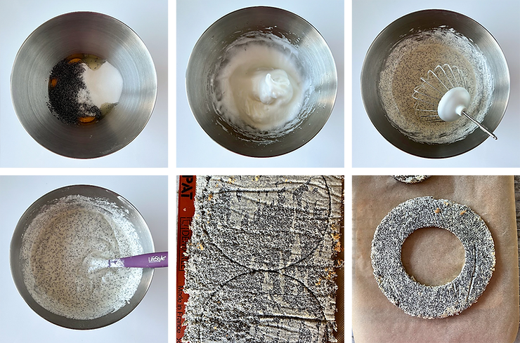 Z białek i cukru B przygotuj bezę francuską. Dodaj bezę w dwóch turach do mikstury z makiem.