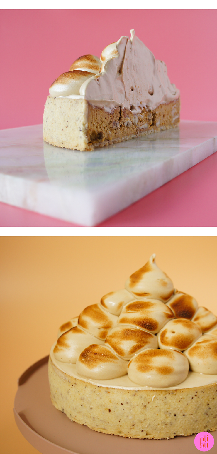 Wypiek jesienny powinien zawierać produkt typowy dla tej pory roku. Dlatego w tarcie nie mogło zabraknąć dyni. Wykorzystałam ją do zrobienia zapiekanego kremu dyniowego z orzechami i przyprawami korzennymi. Do tego nie tak słodka jak zwykle kawowa beza włoska.