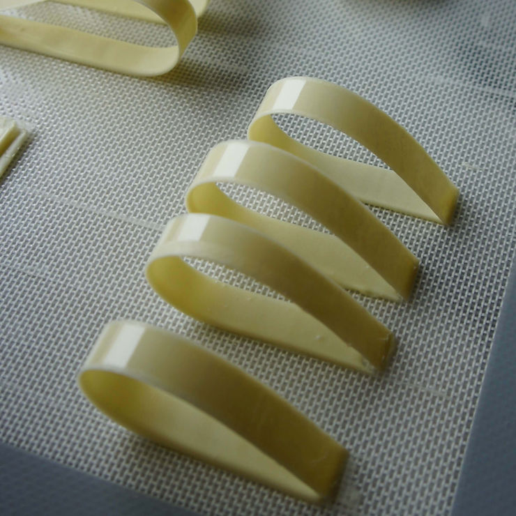 paski wycięte ze sztywnej folii transferowej do czekolady:
