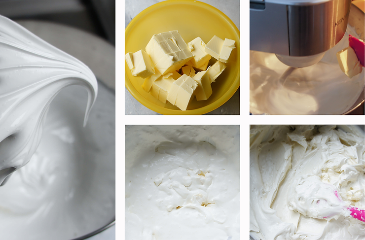 Partiami dodajesz masło, po 2-3 kostki. Kiedy dodasz całe masło, zwiększ obroty na wysokie. Teraz beza łączy się z masłem. Nie martw się, jeśli przez kilka minut krem wygląda, jakby był zważony. To naturalne. Poczekaj, aż wszystko ładnie się ze sobą połączy. Ubijaj do momentu, aż krem będzie gładki i puszysty. Następnie dodaj sok z cytryny i kroplę fioletowego barwnika. Wymieszaj. Teraz dodaj barwnik w kolorze, na jaki chcesz zabarwić tynk. Wskazówka Ady: po co fioletowy barwnik? Fioletowy nieco wybieli żółty odcień kremu. Dzięki temu, przy barwieniu kremu na inne kolory, będzie Ci łatwiej uzyskać odpowiedni kolor.