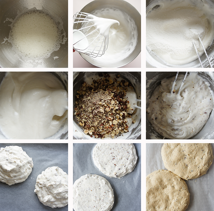 1. dzień: orzechowe blaty bezowe i biszkopt, nasącz