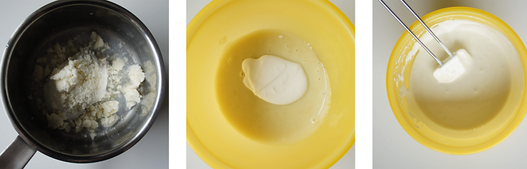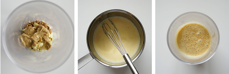 Umieść w rondelku 3 pierwsze składniki. Podgrzej je do 80°C.