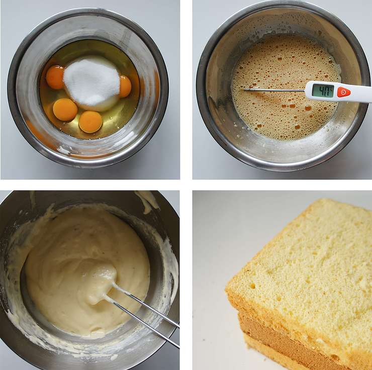 W metalowej misce połącz jaja z cukrem. Podbij je lekko trzepaczką do uzyskania piany z dużymi pęcherzami powietrza.